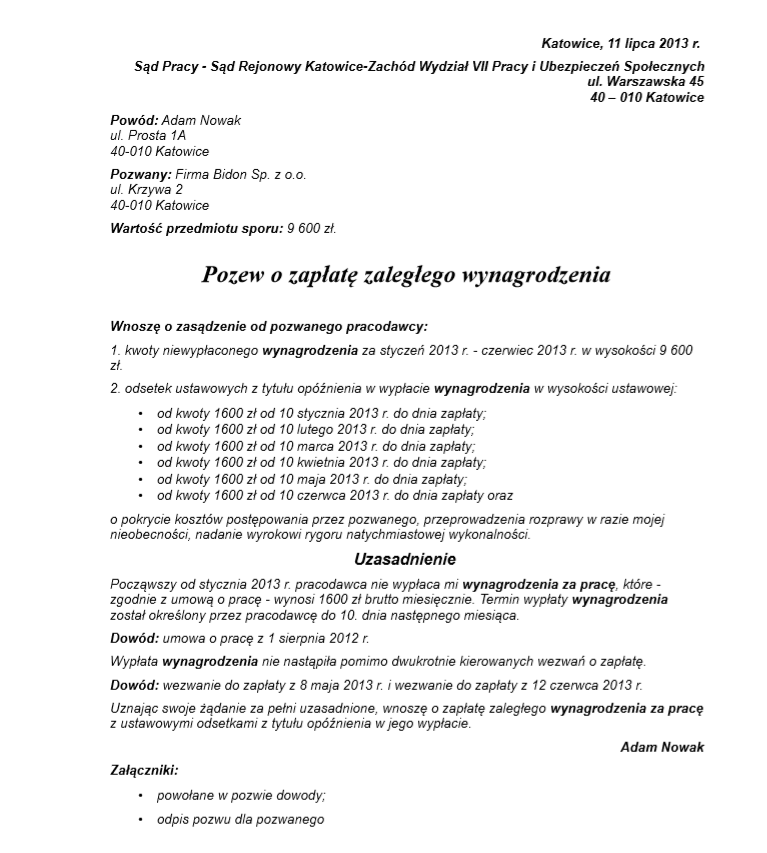Jak napisać pozew do sądu pracy o wypłatę wynagrodzenia - wzór
